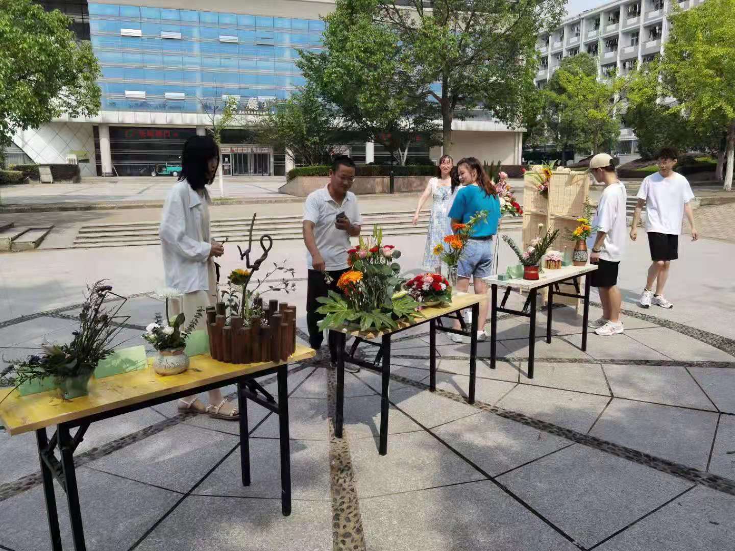 为庆祝中国共产党成立100周年,全面落实“五育并举”,培养大学生动手实践能力,进一步增强“三农”文化育人成效,2021年6月20日,农学院在凤阳校区西区小广场举办了插花艺术作品展。