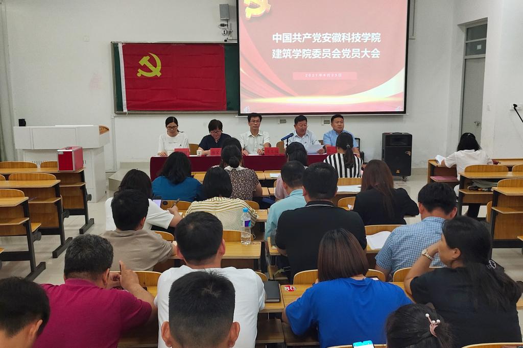6月23日下午,建筑学院在致知楼B208召开中国共产党安徽科技学院建筑学院委员会党员大会,进行“两委”委员选举。建筑学院党政领导及师生党员参加会议,会议由建筑学院党委副书记、院长张远兵主持。