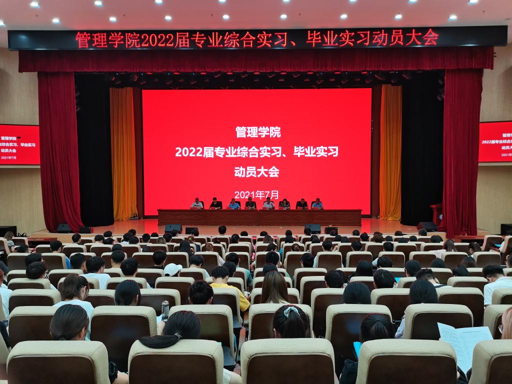 为进一步落实“3+1”人才培养方案,扎实做好2022届学生专业综合实习和毕业实习工作,7月2日下午,管理学院在东辅楼二楼报告厅召开2022届毕业生专业综合实习暨毕业实习动员大会。学院党政领导、系室主任、2022届毕业班辅导员及全体实习生参加了动员大会,大会由副院长张国宝主持。