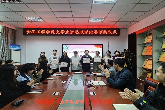 10月23日下午,食品工程学院在学院会议室举行第三届大学生讲思政课比赛颁奖仪式。学院党委书记付光玺莅临指导,相关老师及各参赛队伍代表参与。