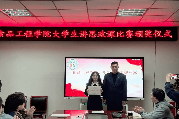 颁奖仪式在热烈与和谐的氛围中完美落幕,经过本次比赛的历练,食院学子们将继续保持学习热情,积极参与各项比赛活动,不断增强自身核心竞争力。相信在未来的日子里,会有更多充满激情与智慧的青年学子在思政教育的舞台上展现自我,为学院、学校的发展贡献自己的青春力量。(特约通讯员:程韬 摄影:倪心彤 审核:付光玺 编辑:李锦)