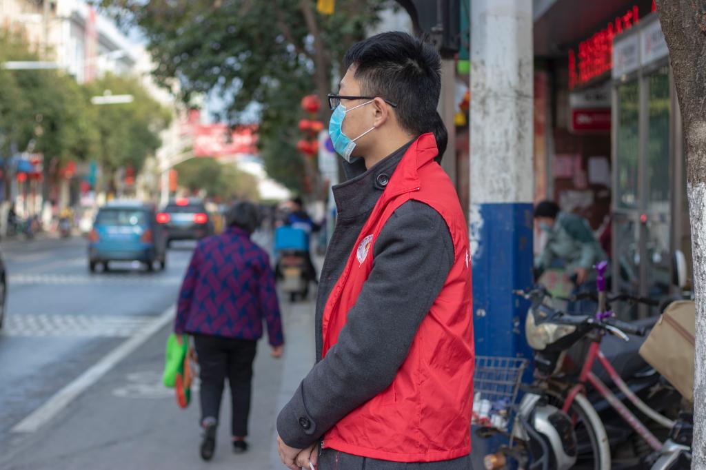 府东街与府北街十字交叉口,连接凤阳实验中学与花铺廊街,是车水马龙的闹市,也是凤阳交通的重要路段,每至早中晚学生上学下课,来往行人便络绎不绝。选在这里进行志愿执勤,八一社的学生们作了特别的考量。