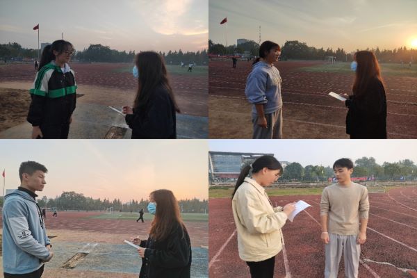 笔者采访到了生物工程213的叶楚琪同学,她正在备战三级跳和跳高项目,只见她不断的重复着起跳的姿势,努力将身体的每一寸肌肉力量发挥到最大,一次又一次的腾空跳跃,都是叶楚琪在向更高更远的目标冲击。