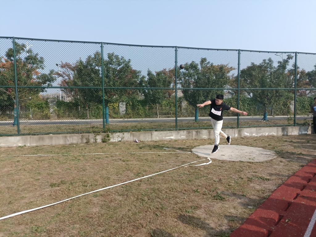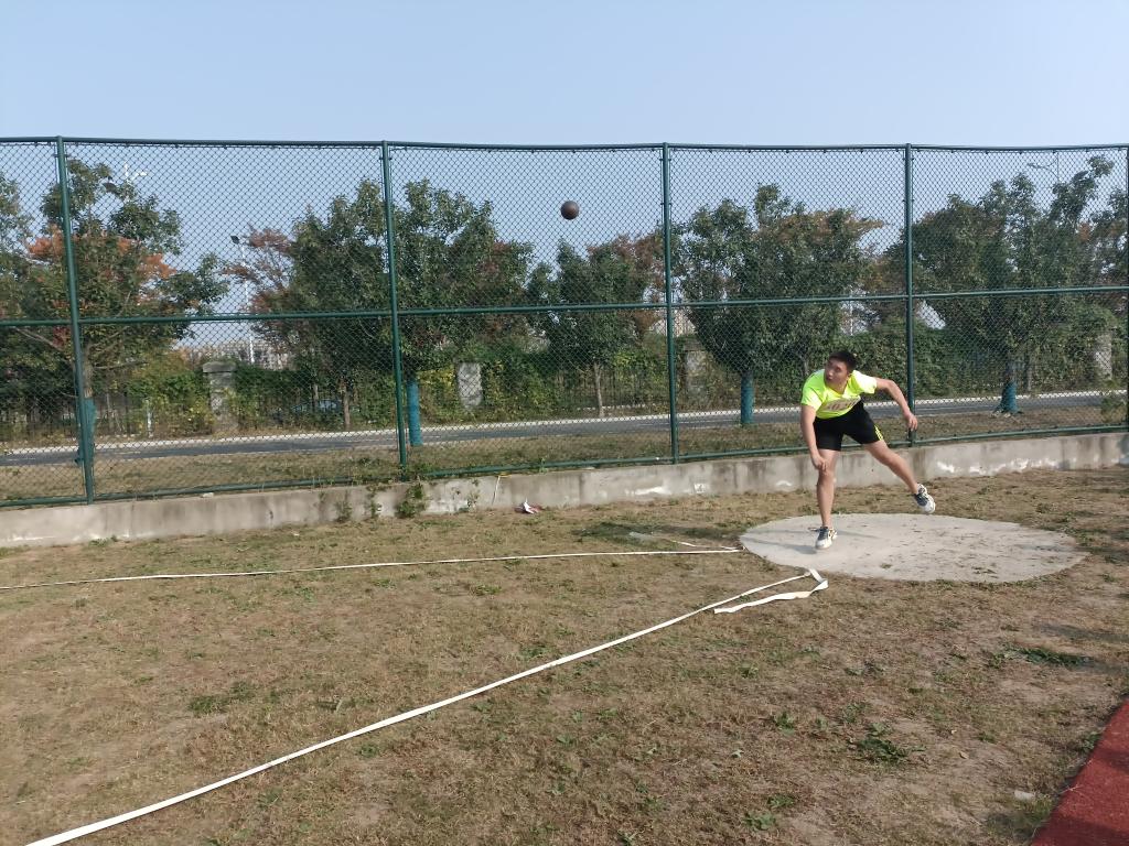 沉重的铅球蕴含着少年们的梦想和汗水。每一次投掷,都是激情与力量的展现;每一次落地,都是努力的收获。最终,来自生物科学201班的魏恩成和生物工程182班的陈荣耀分别荣获男子铅球第二名和第八名。