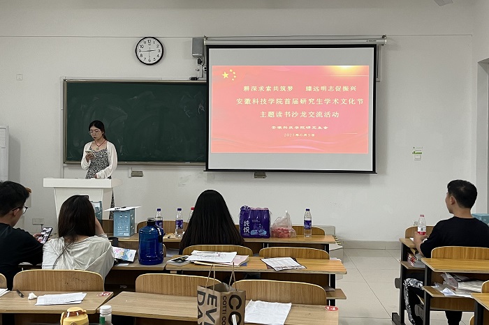 为持续营造首届研究生学术文化节浓厚的交流互促氛围,倡导学习共进、以文会友的研究生校园生活理念,以读书搭建研究生成长交流平台,6月9日下午,由校研究生会承办的安徽科技学院首届研究生学术文化节主题读书交流活动,在龙湖校区致知楼B403教室举行,活动特别邀请了“百花于春放 读书在此时”研究生主题读书征文活动的获奖作者参加,一同分享自己的阅读感受以及创作经验。