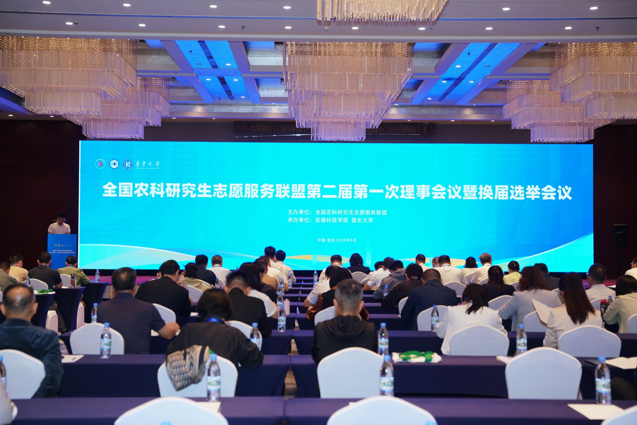 2025年9月18日-19日,全国农科研究生志愿服务联盟第二届第一次理事会暨换届选举会议在山东烟台召开。本次会议由安徽科技学院与鲁东大学联合承办。中国学位与研究生教育学会农林学科工作委员会主任委员、中国农业大学研究生院常务副院长郭鑫,农林学科工作委员会秘书长、中国农业大学党委研究生工作部部长、研究生院副院长马紫威,联盟第一届理事会秘书长、安徽科技学院党委副书记、院长李升和以及来自近100所兄弟高校的各位领导及代表参加会议。安徽科技学院党委委员、副院长王孝义主持会议。