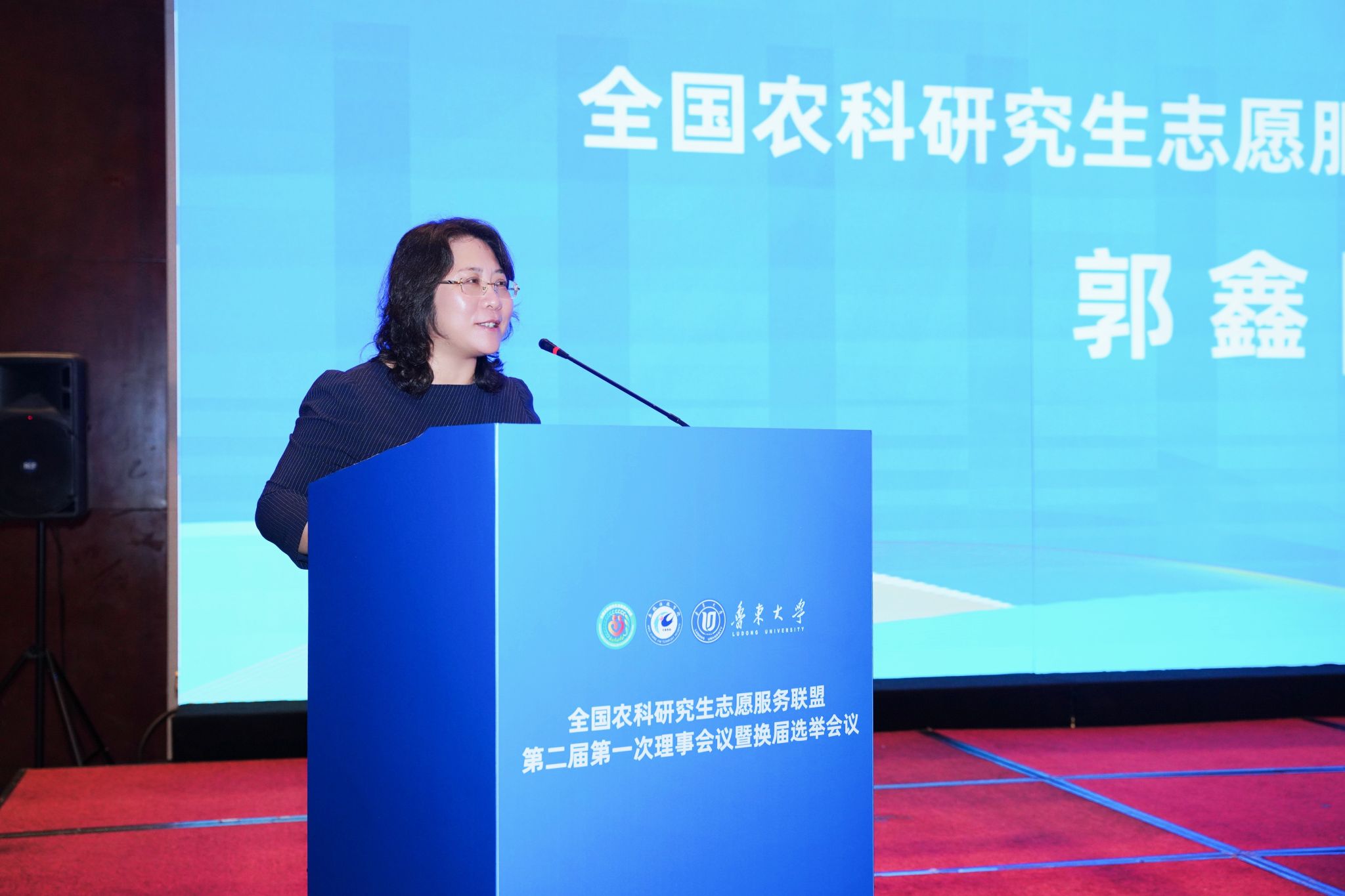 李升和代表联盟第一届理事会作工作报告。他指出,联盟自成立以来,始终以“志愿服务助力乡村振兴,青年成长开创美好未来”为宗旨,为农科研究生投身“三农”事业搭建了坚实平台,客观剖析发展中的不足,为新一届理事会工作提供了重要参考。他在就职发言中承诺,将带领新一届理事会坚守联盟初心,通过整合资源、创新举措,推动志愿服务工作提质增效;4位轮值主席依次进行了发言表态,分享对联盟发展的规划与担当。鲁东大学研究生院院长、轮值主席亓朋在大会总结中强调,本次会议既是规范有序的换届大会,更是凝聚共识、谋划未来的动员大会,为联盟下一步发展奠定了坚实基础。