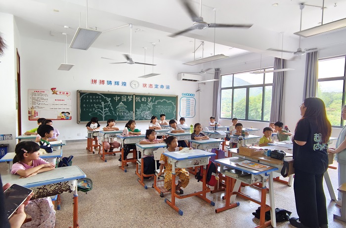 午后,支教队员余老师在浙江欢岙小学的教室里为同学们讲述七七事变。他神情庄重,从卢沟桥事变讲到中华儿女的不屈抗争,生动的讲述让同学们深切感受那段历史的厚重,认识到七七事变作为全面抗战开端的意义,接受了一次深刻的爱国主义洗礼,激励大家为民族复兴努力。